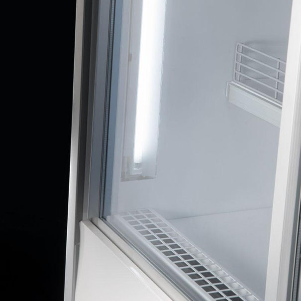 Upper led lighting, white for “SL / FV” versions (Cold cuts and Dairy products / Fruit and Vegetables), pink for “C” version (Pre-packed meat).