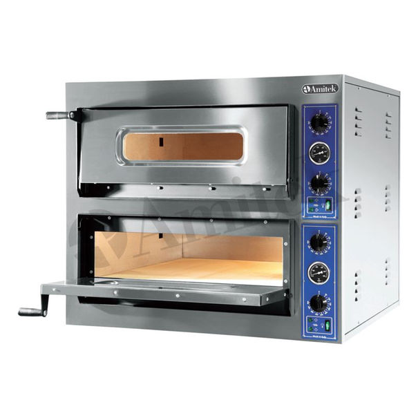 Electric pizza oven with double baking chamber