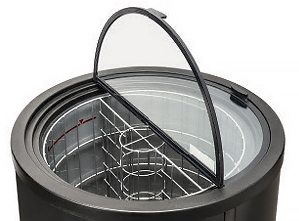 Practical, reliable and durable, this chest cooler with cylindrical shape and glass top, has been specially designed for display and storage the cans. Equipped with a static cooling system, handle on the glass frame, inner spacer, the HP 80 model is also easily to move thanks to its 3 swivel wheels.