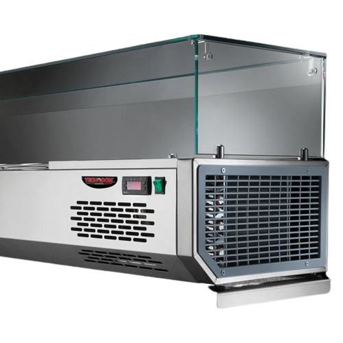 Refrigerated display made entirely in stainless steel, suitable to position 1/2 - 1/3 – 1/4 - 1/6 – 1/9 GN bowls with a maximum height of 150 mm