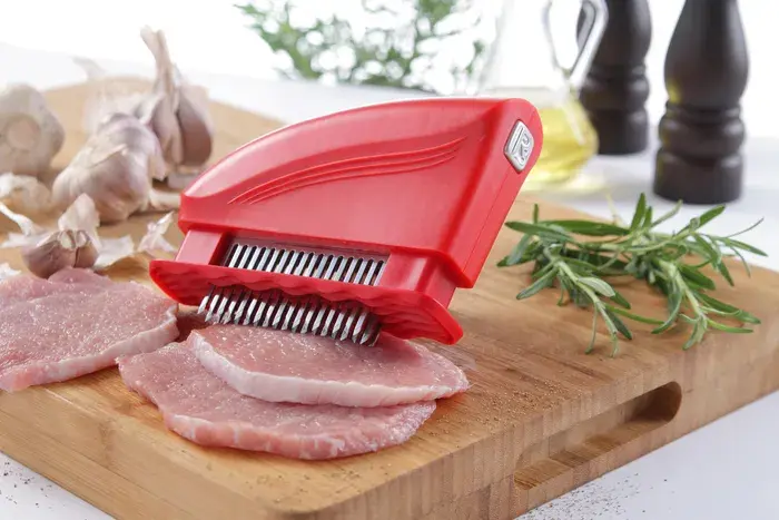 Perfectly tenderises meat by softening the tissue and flattening meat at the same time.