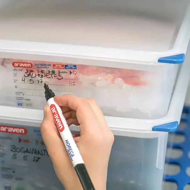 Araven’s new GastroNorm airtight containers also include new colorclips to help manage food and they feature improvements to the IML traceability label. 7 Colorclips that facilitate the management of food in the kitchen based on different criteria such as: type of food, day of the week, work area, etc.